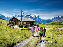 Vom Brünigpass erreichen Sie die Bergbahnstation Reuti in etwa 20 Minuten. Dort führt Sie die Gondelbahn auf Planplatten zum Alpen tower auf 2250 Meter ü. M., dem Startpunkt für den gut ausgebauten 5,8 Kilometer langen Sonnenweg. Wie immer auf Bergtouren, lohnt es sich, früh aufzubrechen. Nicht nur um die geplante Wanderung ohne Hast zu bewältigen, sondern auch um den besonderen Reiz der Morgenstimmung zu geniessen. Und plötzlich liegt Ihnen Meiringen, inmitten des Haslitals, zu füssen. Sobald der Alpen tower erreicht ist, geniessen Sie einen herrlichen Panoramablick über 401 Bergspitzen zu Eiger, Mönch, Wetterhorn und den Zentralschweizer Alpen. Nun beginnt Ihre Wanderung mit dem Ziel „Käserstatt“ – wobei die Wanderstrecke gemütlich verläuft und für jedermann gut zu bewältigen ist. Die Wanderzeit beträgt etwa 2 Stunden, ohne nennenswerte Steigungen. Diese Tour ist bestens geeignet für Familien mit Kinder und bietet eine echte Erholung vom Alltagsstress. Der neue Sonnenweg ist ein absolutes Highlight in den Berner Alpen mit einzigartigem Blick auf die Alpenlandschaft und schneebedeckte Gipfel. Für kleine Abenteurer, grosse Entdecker, Geniesser und Naturbegeisterte ist dieser Wanderweg ein wahres Vergnügen. Ob routinierter Wanderer oder Gelegenheits-Berggänger, entlang dem Sonnenweg gibt es frische Alpenluft und Energie zu tanken!