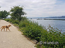 Notre chemin nous mène à travers le Grosse Moos, le jardin potager de la Suisse. Il est 8 heures du matin et nous profitons du calme, car aujourd'hui encore, un temps de rêve est annoncé, ce qui signifie que nous ne serons bientôt plus seuls sur la route. Après une promenade confortable à travers un beau morceau de forêt, où il y a aussi la possibilité de faire un barbecue, le chemin se termine soudainement et nous nous trouvons directement devant le canal de la Broye. Quel beau spectacle ! Immédiatement à gauche, on voit le pont rotatif qui a été construit pour les cyclistes et les randonneurs à l'occasion de l'Expo.02, la 6e Exposition nationale suisse. Notre chemin mène exactement sur ce pont mais à proximité immédiate se trouve le Camping les 3 Lacs et là nous faisons une courte pause à Kafi. Le restaurant est situé directement au bord du canal de la Broye et la vue est tout simplement inestimable. Après un bon café et des croissants, nous continuons notre randonnée, mais avant de quitter le camping, nous faisons une petite promenade dans le camping. Rarement nous avons vu un site aussi beau et aussi bien entretenu. Rapidement et sans effort, nous atteignons le joli village de pêcheurs de Muntelier/Montilier, plus ou moins au bord du lac, et juste à côté la petite ville de Morat. Après avoir traversé le pont, nous sommes dans le canton de Fribourg. Nous tournons brusquement à gauche et suivons le canal de la Broye jusqu'à Sugiez avec ses remarquables vieilles fermes et vignobles. Sur le chemin suivant à travers la forêt riveraine, on trouve des planches portant le logo "sanglier". Ils encouragent la réflexion et l'observation. Nous sommes au milieu d'une réserve naturelle et devons donc tenir le chien en laisse. Maintenant, les lève-tard sont également réveillés et nous rencontrons de plus en plus de gens sur la belle promenade du lac qui nous mène à la dernière partie de la randonnée de Muntelier à Morat. Biora peut toujours se rafraîchir dans le lac de Morat et elle aime évidemment cela. Le Seematte à Morat est très populaire et nous rencontrons donc de nombreux touristes. Nous nous régalons d'une délicieuse glace avant de nous promener dans la ville de Morat et de prendre le train pour retourner à Ins.